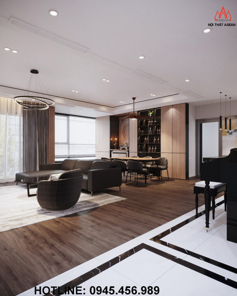 – Tổng chi phí thiết kế và thi công nội thất: 398tr bao gồm nội thất phòng Khách, bếp, 3 phòng ngủ….