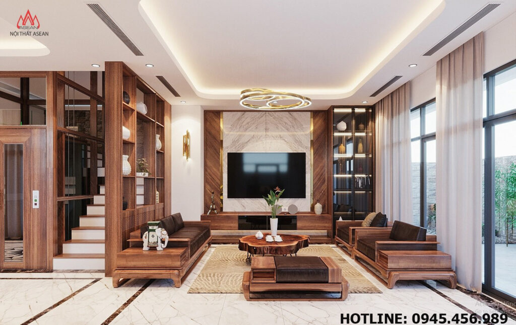 – Vật liệu nội thất: Gỗ sồi Nga nhập khẩu kết hợp gỗ Công Nghiệp An Cường An Cường sử dụng sơn Inchem cao cấp.