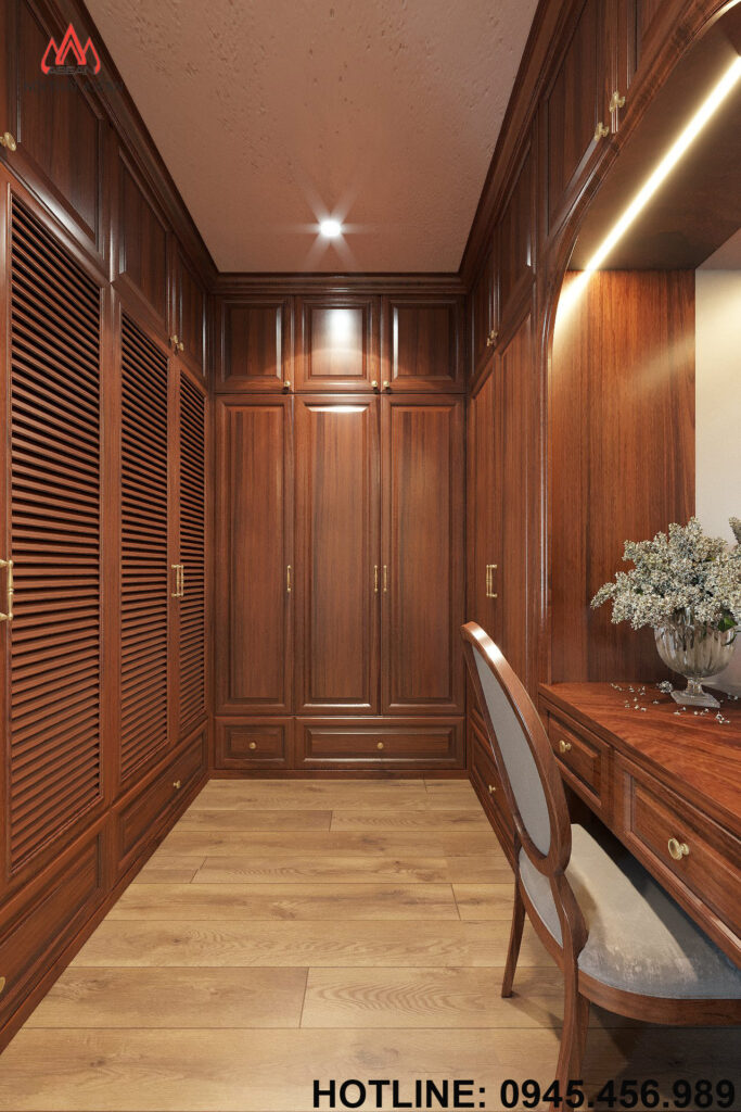 * Phong cách thiết kế Tân cổ thuần Việt, mang hơi ấm của gỗ, văn hoá nội thất Á Đông. Ngoài sự sang trọng, tinh hoa trong từng nét gỗ, nội thất còn mang lại giá trị phong thuỷ cao, gỗ tự nhiên là vật liệu dưỡng khí trong căn hộ. Gia chủ sử dụng gỗ tự nhiên gia đình sẽ luôn hạnh phúc, sức khoẻ dồi dào, làm ăn thịnh vượng.
