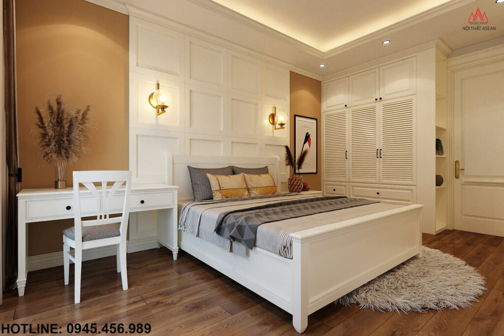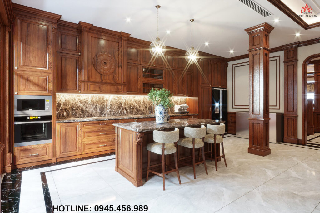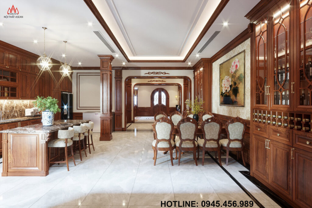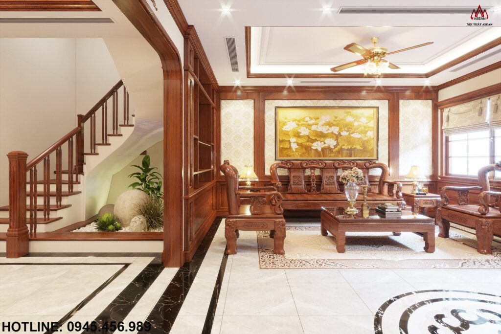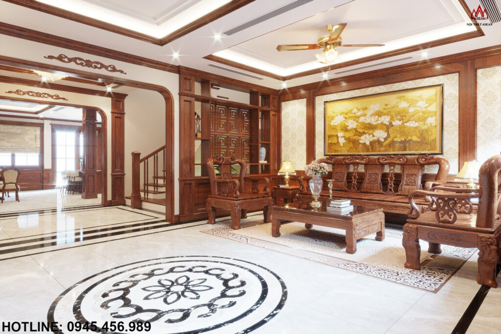 * Phong cách thiết kế Tân cổ thuần Việt, mang hơi ấm của gỗ, văn hoá nội thất Á Đông. Ngoài sự sang trọng, tinh hoa trong từng nét gỗ, nội thất còn mang lại giá trị phong thuỷ cao, gỗ tự nhiên là vật liệu dưỡng khí trong căn hộ. Gia chủ sử dụng gỗ tự nhiên gia đình sẽ luôn hạnh phúc, sức khoẻ dồi dào, làm ăn thịnh vượng.