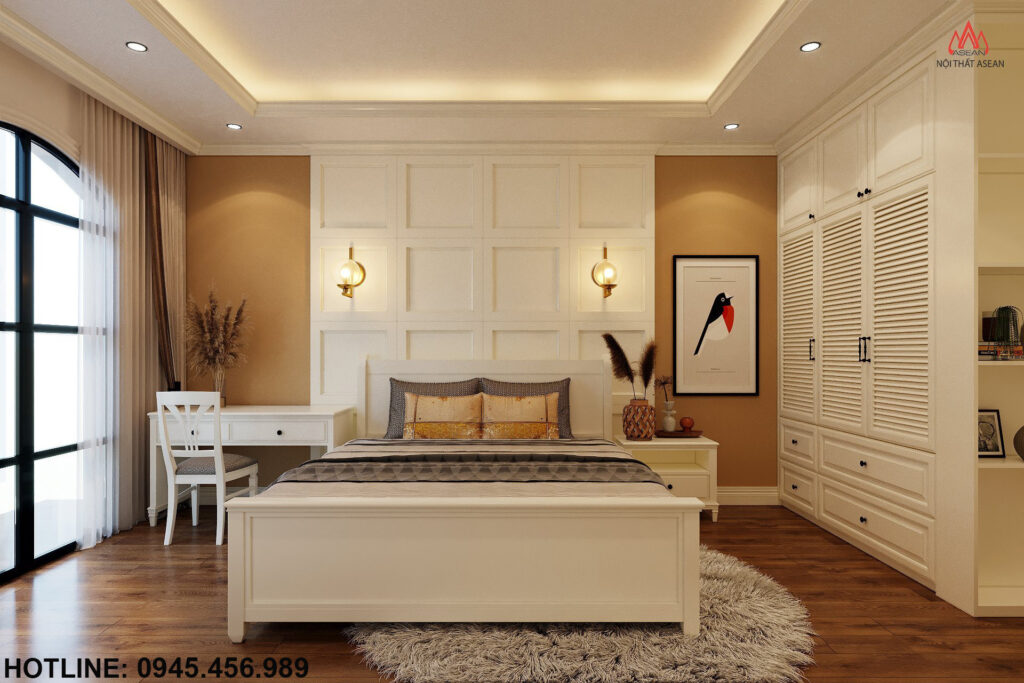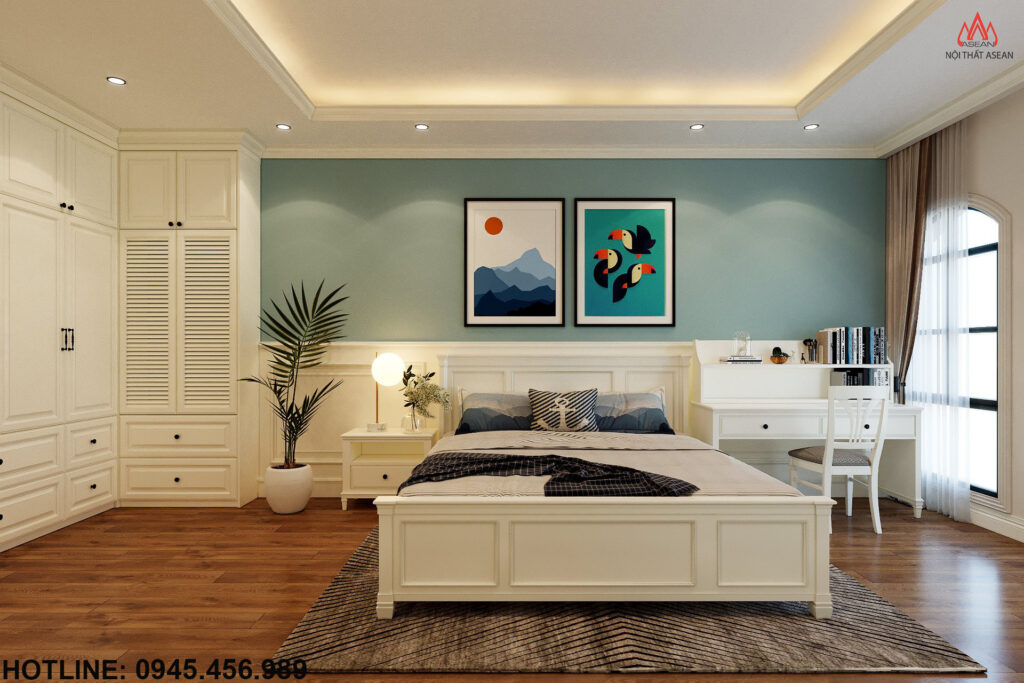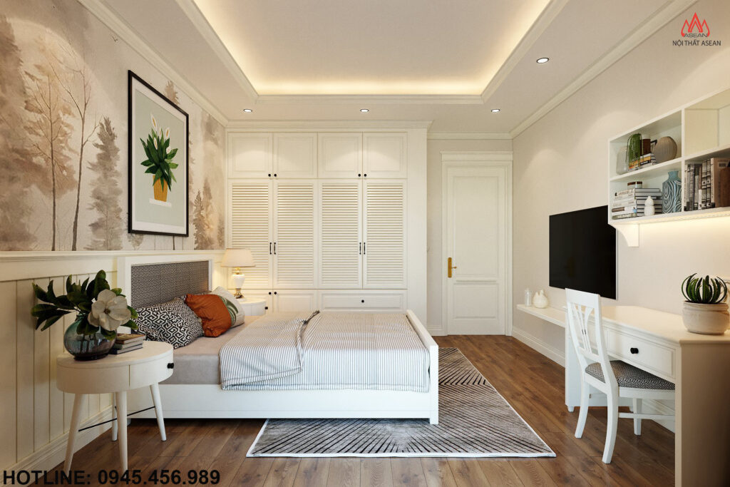 – Tổng chi phí thiết kế và thi công: 3 tỷ, bao gồm nội thất phòng khách, bếp, 4 phòng ngủ, phòng thờ, 2 phòng sinh hoạt chung, wc. Hoàn thiện hệ thống cửa, cầu thang, sàn gỗ…..