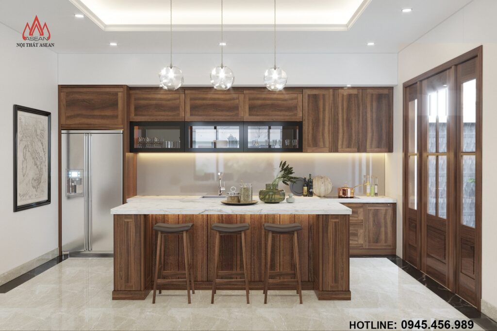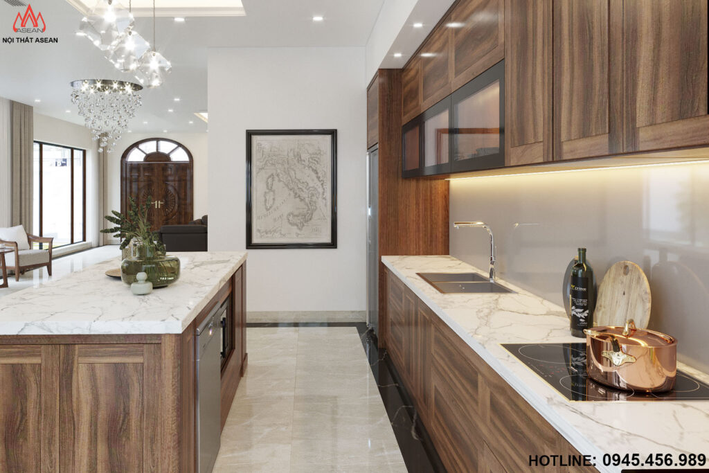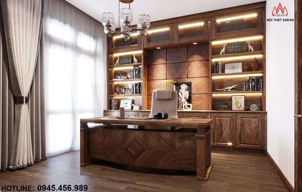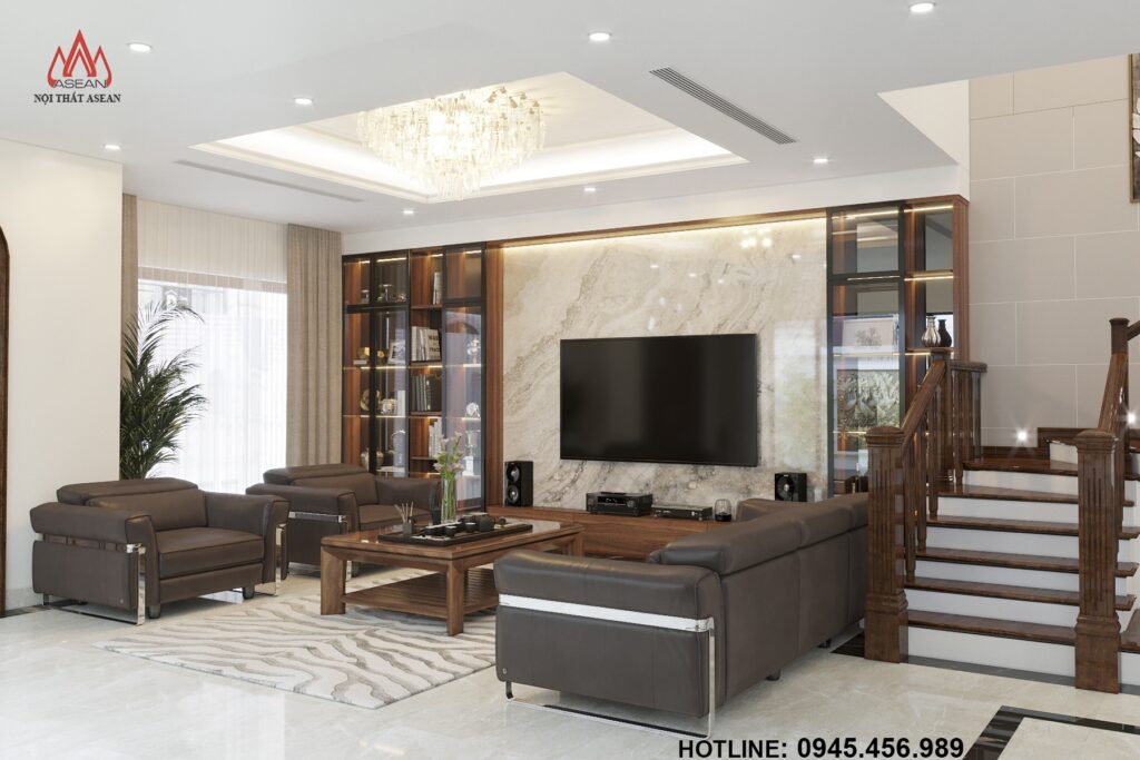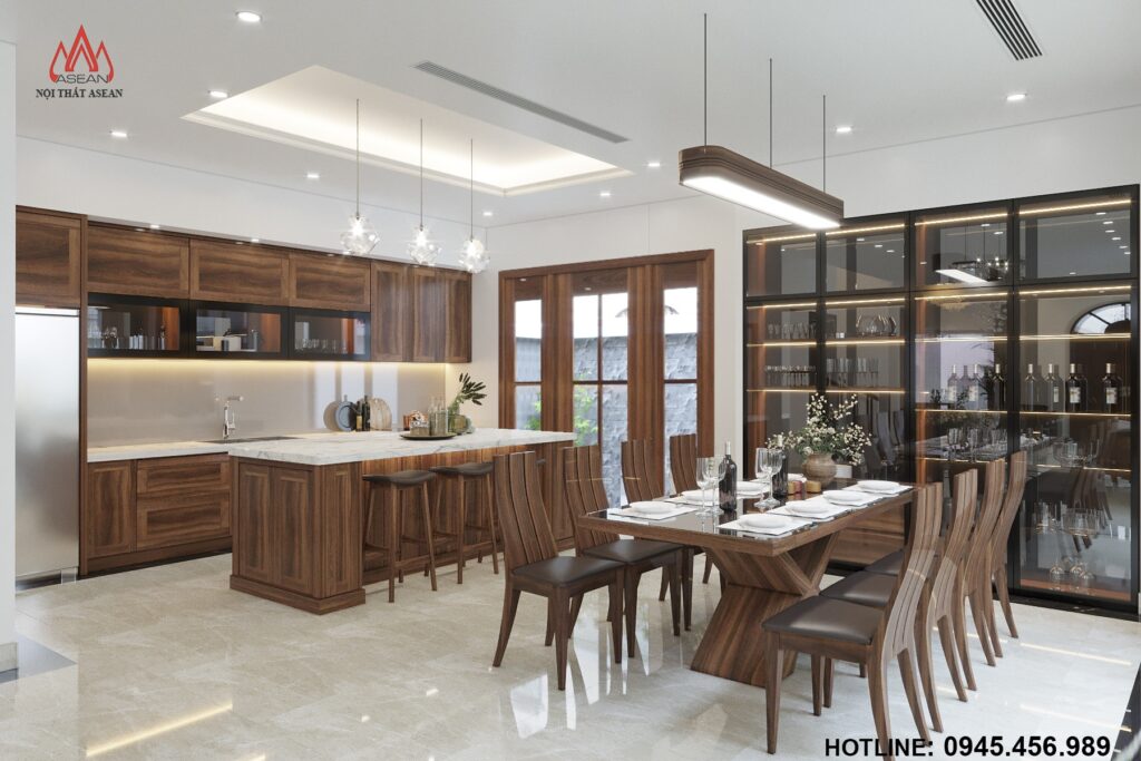 Được thiết kế sang trọng, hiện đại và tiện nghi để làm nổi bật lên sự đẳng cấp của gia chủ cũng như gây ấn tượng với bất kì vị khách nào khi bước vào căn nhà với chất liệu gỗ Óc Chó đã tạo nên được sự khách biệt lớn này cho căn Biệt thự của gia chủ.
