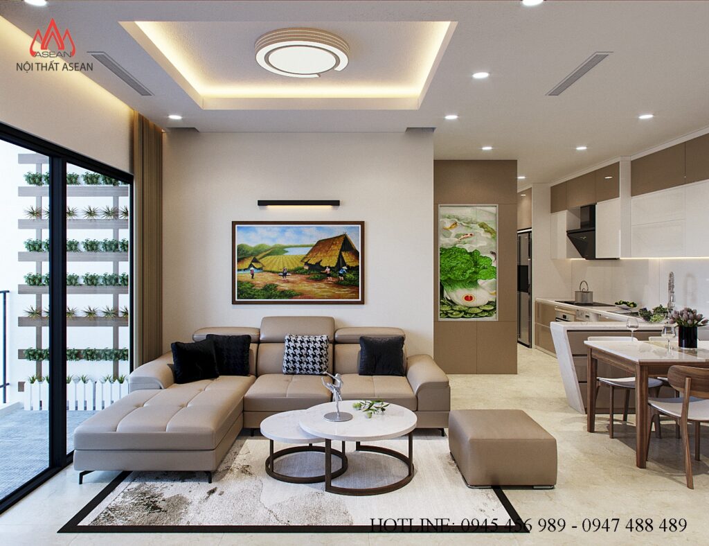 – Chất liệu: Phòng bếp thùng tủ gỗ nhựa Picomat, hệ cánh Acrylic An Cường. Phòng khách, Phòng ngủ và phòng sinh hoạt chung: Gỗ Sồi Nga nhập khẩu hệ cánh MDF cốt chống ẩm An Cường, sử dụng sơn Inchem cao cấp.