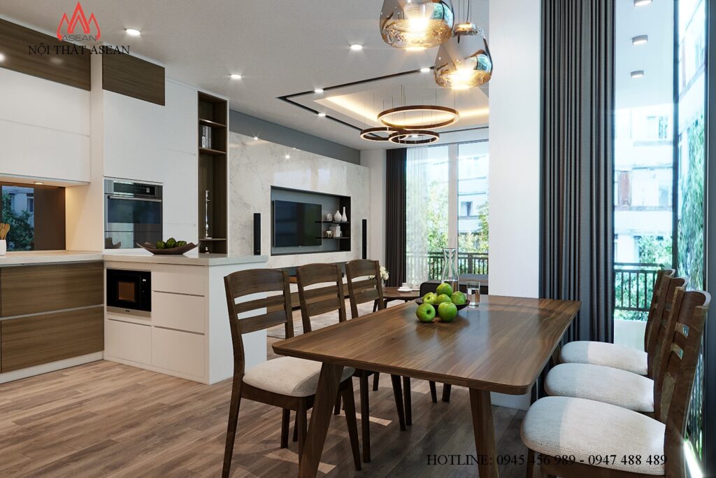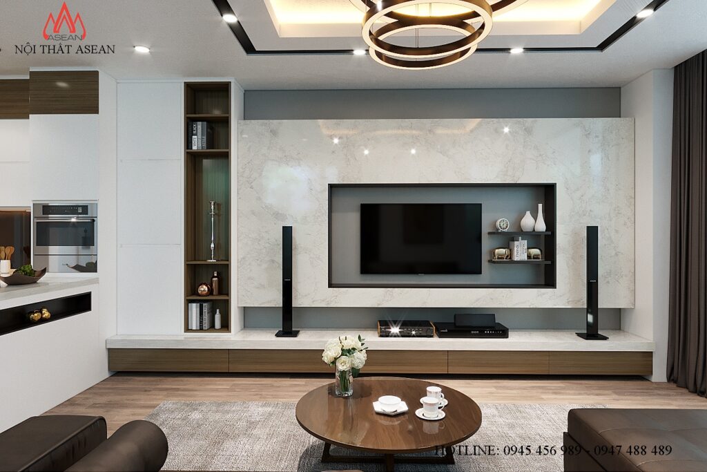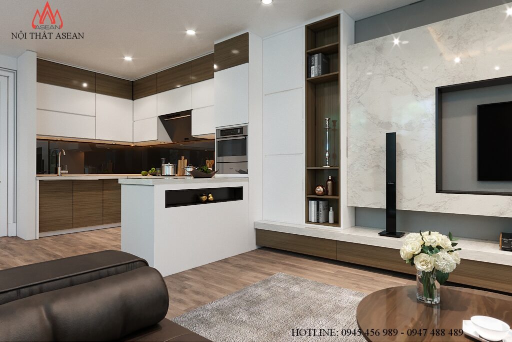 Acrylic cốt chống ẩm An Cường, dán cạnh không đường line. Nội thất phòng khách, 2 phòng ngủ Laminate An Cường.