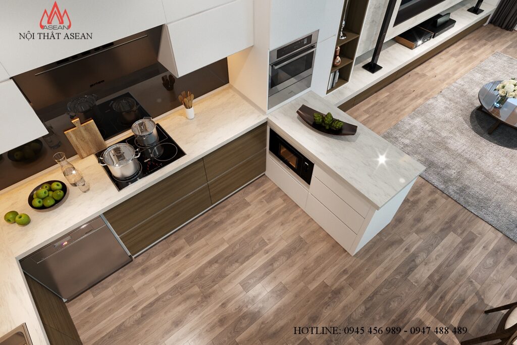 – Chất liệu: Tủ bếp thùng gỗ nhựa Picomat hệ cánh